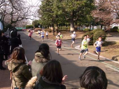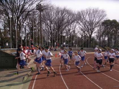 久しぶりの太陽の光の下、砧の学び舎持久走大会が行われました。砧の学び舎3校(砧小、明正小、山野小)の5,6年生が砧総合グランドに一堂に会しました。陸上競技場のトラックからスタートし、大蔵運動公園内を走り、またトラックに戻ってくる約1.4キロのコースです。持久走は自分との闘いです。折れそうになる自分の心に、がんばれ、がんばれと言って、全力を尽くす姿がたくさんたくさん見られました。とっても良かったのは、すでにゴールした子どもたちが、自分の学校の子だけではなく、ほかの学校の子にも声援を送っていたことでした。同じ街に住む、同じ学び舎の仲間という気持ちが伝わってくる瞬間でした。とってもいい行事だなあと思いました。