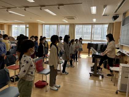 4年生になって初めての音楽室での授業でした。