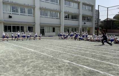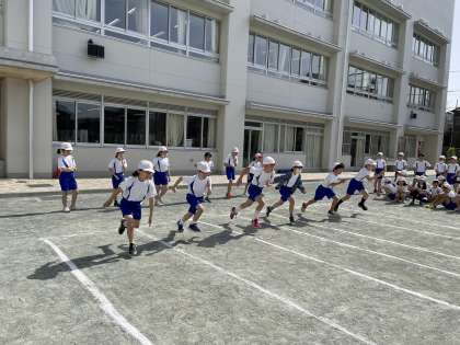 4年生が50m走のタイムを計りました。