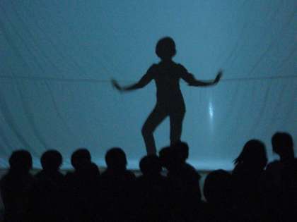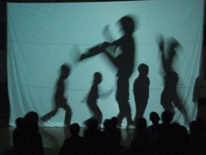 手の影で、きつねや犬を作る影絵から、さらに発展して、からだを使っての影絵や物語つくりにチャレンジしました。