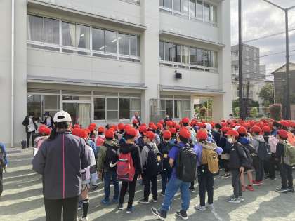 朝早くからわくわくした様子で集まっていました。ですが、出発式では話す人の方をしっかり見て静かに聞いていました。さすが、3年生ですね!