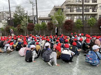 校庭で「帰校式」が行われました。疲れていても最後までしっかりと話を聞いて、立派な態度でした。