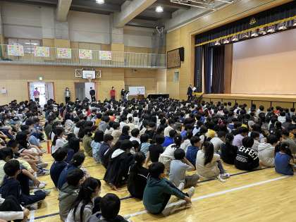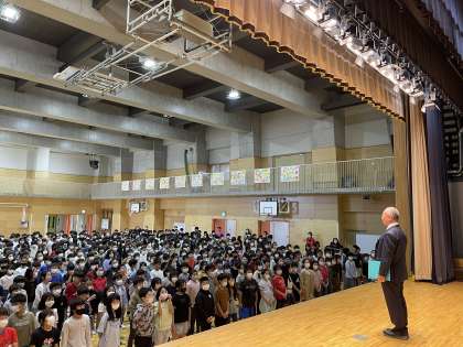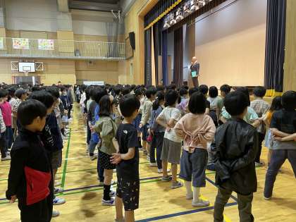 4年・5年・6年が集まりました。約600人の児童です。とても静かで落ち着いていて、さすが高学年の姿でした。