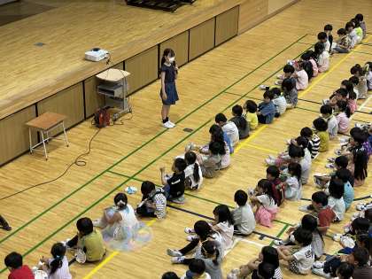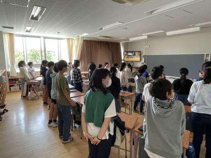 最後に全校児童で校歌を歌いました。体育館は、元気な歌声が響いて圧巻でした。教室でも校歌の歌声は響いていました。