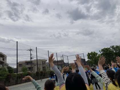 撮影が終わって、セスナがお別れの挨拶をしてくれました。翼を左右に振ってくれたのです。みんなもセスナに向かって手を振りました。