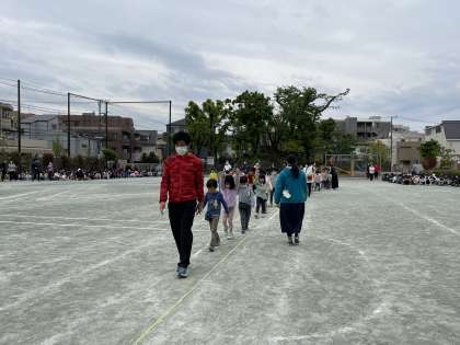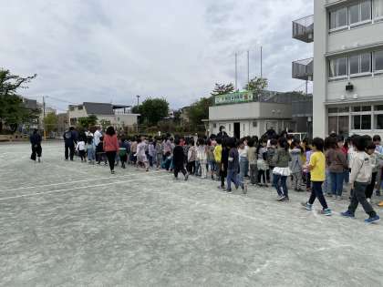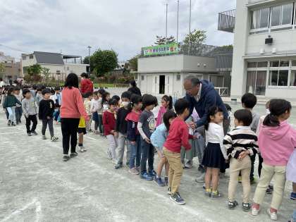 そして、全校集合写真を撮りました。1、2、3年生と4、5、6年生で分かれて撮影しました。並ぶだけで、とても時間がかかりましたが、最後までみんなが協力して頑張ってくれました。