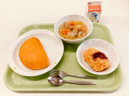 今日は、コロッケバーガー、野菜のポトフ、牛乳です。