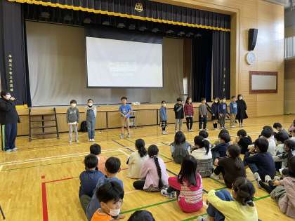どんな種目を行うのか、先生が作った映像を見ました。見終わると拍手が起こり、みんなやる気になっているようでした。そして、実行委員さんの紹介をしました。実行委員が中心となって、子供たちが主体的に活動していきます。