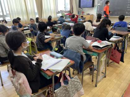 「すみれば」から学校に返ってきて、観察してきたことをワークシートにまとめました。どのクラスも、とても集中して書いていました。心に残ったことがたくさんあるのでしょう。自分だけの「すみれば図鑑」になりますね。