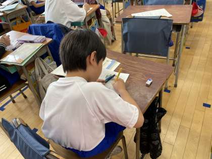 枕草子の学習をしていました。教科書を読んで、古語の意味を理解しました。そして、自分でも、どの季節が好きなのか、清少納言になったつもりで古文を書きました。季節の風景の絵も添えて、すてきな世界を表していまいした。