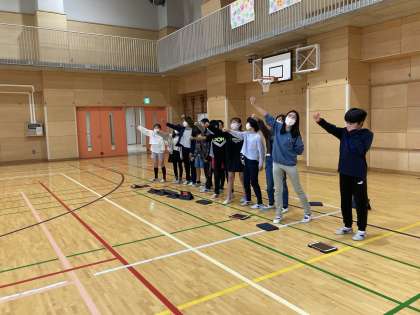 スポーツフェスタに向けて応援団が朝練をしていました。