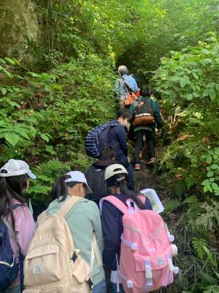 険しい道も友達と楽しく歩きました。