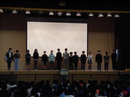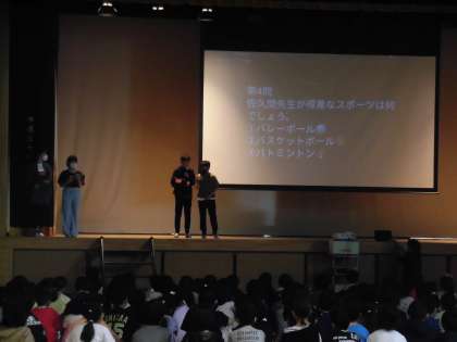 集会委員会が企画・準備・司会をし、先生紹介クイズをしていました。