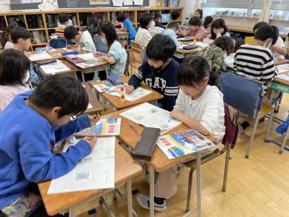 東京都の水の使われ方を3つの資料から読み取りました。自分の考えをグループで共有することで、新たなことに気づき、自分の考えが広がっていました。