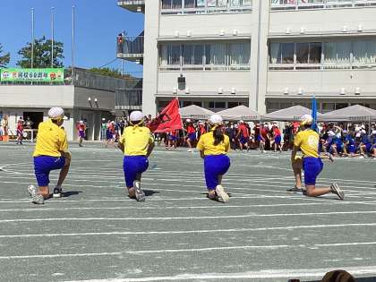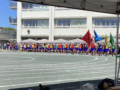 校長先生のお話もしっかり聞けました。保護者のも皆様もマナーよくご観覧いただきありがとうございます。開会式の後は応援団による応援合戦です。大きな声が響いていました。全員参加のウェーブもお見事!