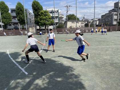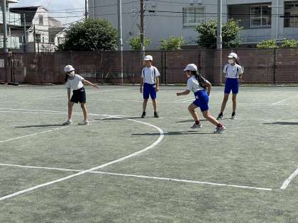 スポーツフェスタでバトンパスの仕方を覚えた子が、チームのメンバーに教えていました。見合ったり、声を掛け合ったりしながら、とても上手にチーム練習ができました。