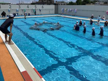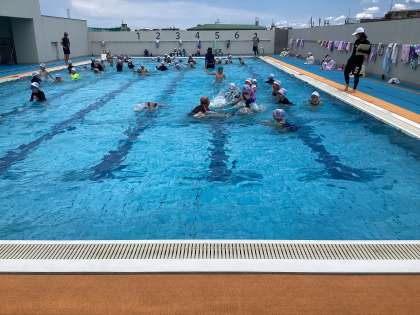 声を出したり、手を繋いだり、制約のないプールでの学習は、3年ぶりです。