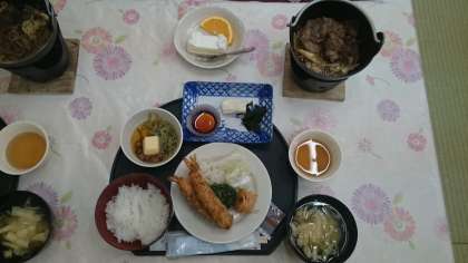 1日目の夕食です。すき焼きの匂いが食欲をそそります。