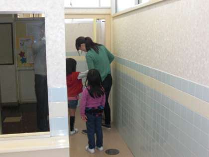 2組の三森学級では、トイレに行って、トイレの使い方、