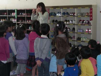 3組の白土学級では、下駄箱の前で、靴の入れ方