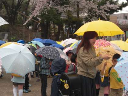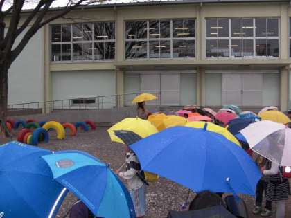 色とりどりの傘から見え隠れする子どもたちの表情は、今日もニコニコ笑顔でした。