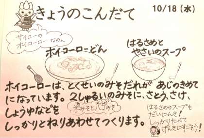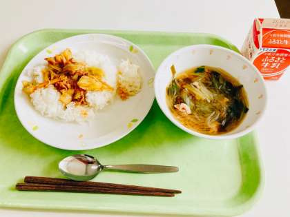 今日は、回鍋肉丼、春雨と野菜のスープ、牛乳です。