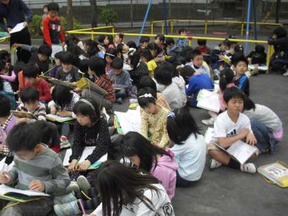 社会科の学習の一環で、山野小学校のまわりを探検しました。