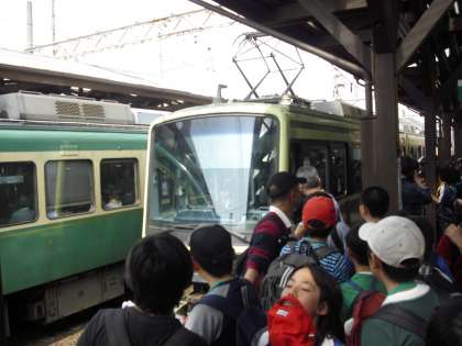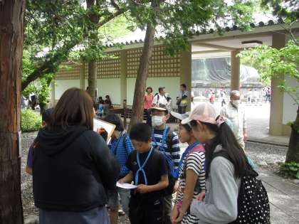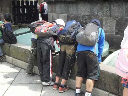 原口先生のチェックを受けて、おやつタイムです。ここもたくさんの観光客でいっぱいでした。泥だらけのお尻が、途中の坂道の艱難さを表しています。(お家の皆さん、洗濯大変ですね。すみません!)大仏から江ノ電の長谷駅まで歩き、江ノ電に乗って海を見ながら藤沢まで行きました。帰りの小田急線は、疲れからか眠っている子もいました。グループ行動で見せた仲間と力を合わせる姿を、これからの生活の様々な場面で発揮していってほしいです。