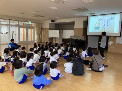 今日は1年生の身体測定でした。はじめに保健カルタ大会をみんなでしました。健康にまつわる絵札をみて、読み札の隠された言葉を当てる、という物でした。子供達は「これはなんだろう?」とみんなで考えながら、意欲的に参加していました。