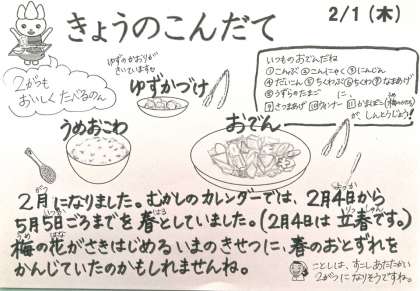 昔はおでんと言えば屋台でしたが、今は、コンビニですね。コンビニのおでんも美味しいですけど、給食のおでんは味が濃すぎず、家庭の味に近い美味しさです。思わず、「おでんは、ありがとうございます」と、つぶやいてしまいそうです。