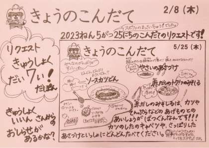 2月8日の記事で「きょうのこんだて」の写真が間違えていましたので、訂正させていただきます。申し訳ありませんでした。