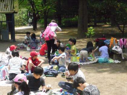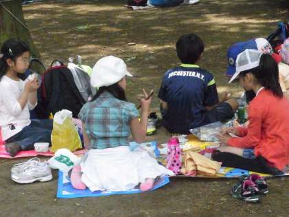 ほとんどの子がシートを広げ、まずは腹ごしらえ。