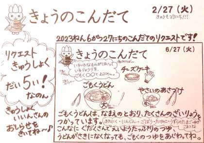 リクエスト給食の第5位です。2023年6月27日の献立です。
