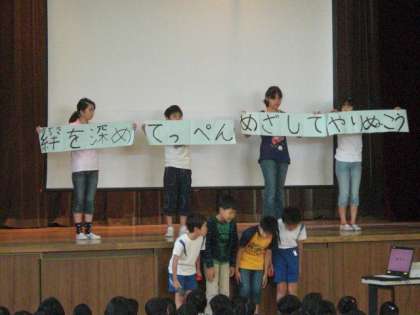 「絆を深めて てっぺんめざして やりぬこう」です。