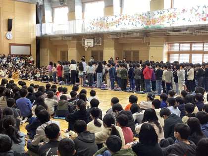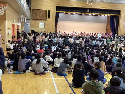 6年生を送る会が行われました。全学年が体育館に集合しての会は、本当に久しぶり。どの学年も今日のために、練習をしてきました。