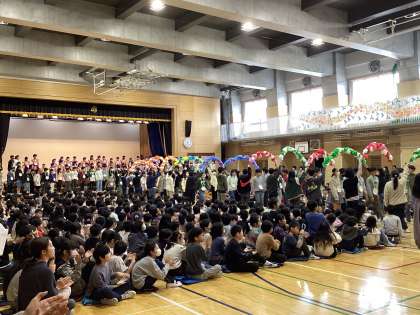 6年生から5年生へ代表委員会の引き継ぎ。そして退場は、花のアーチです。