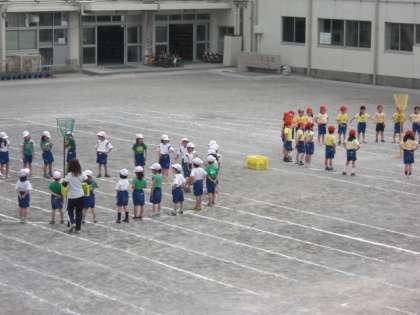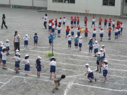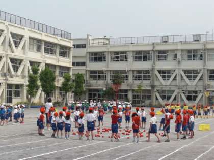 スポーツフェスタ1年生団体種目「チェッコリ玉入れ」の練習です。