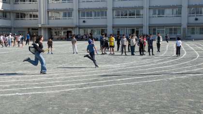リレーの朝練が進んでいます。しっかりと準備運動をしてからバトンパスの練習を重ねています。チームごとに作戦があるので楽しみです。