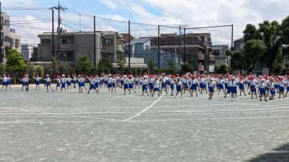 スポーツフェスタの練習に熱が入ってきています。3年生は校庭でよさこいのポジションを確認していました。