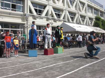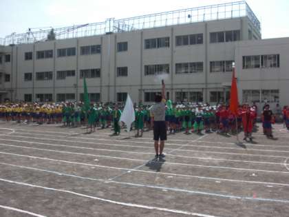 スポーツフェスタ委員長・富田教諭の祝砲でスタート。