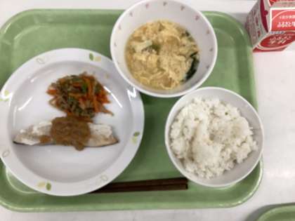 今日の給食は、ご飯、さわらのごまみそかけ、切干大根の煮付け、むらくも汁、牛乳です。どのメニューも大好きですが、特にむらくも汁は大好きで、むら夢中にもくもくと食べてしまいました。