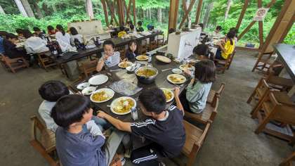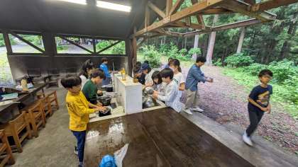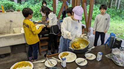 美味しいカレーが出来上がりました。しっかり食べて、片付けもがんばっています。
