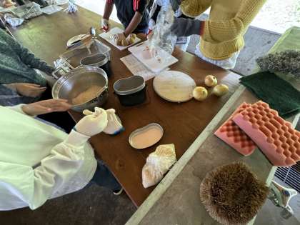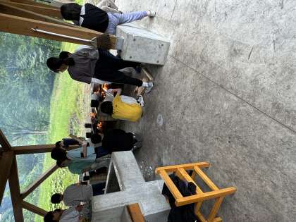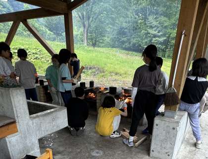 説明のあと、班ごとにカレー作りです。火をつけ、お米をといで、野菜を切って、どの班も手際よく作業をすすめました。