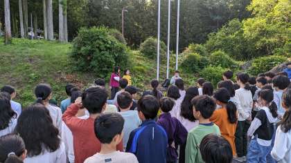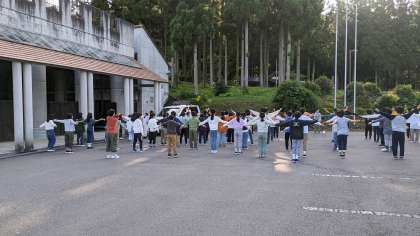朝までぐっすりと寝ていた子供たちです。元気に朝会をしました。
