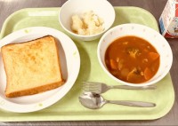 給食のカレーは、市販のカレールーなどは使わず、特性のルー作りから始めます。まっさらな状態から、ガラムマッサラなどを入れて作るのですね。ガラムマサラは、いろいろな香辛料を混ぜたものだったのか。こりゃなんだろうと思うような香辛料、コリアンダーなども入れちゃうのでしょうか。バターの香りがして、とても美味しいです。