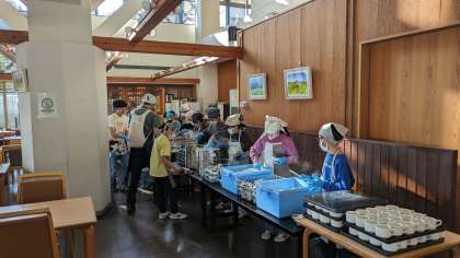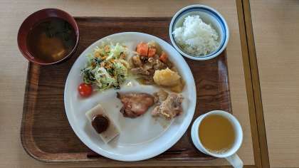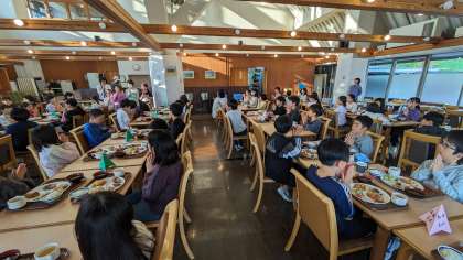 無事に下山してきました。お風呂に入ってサッパリしたあとは、夕食です。みんなたくさん食べています。