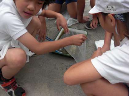 今日は、その救出したヤゴを各学級で、観察できるよう分けたり、