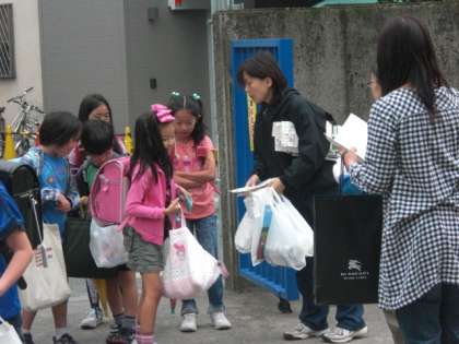 今朝は、子どもたちが手に手に、