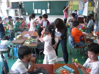 2年3組早川学級。なにやら愉しげなゲーム(写真:中)