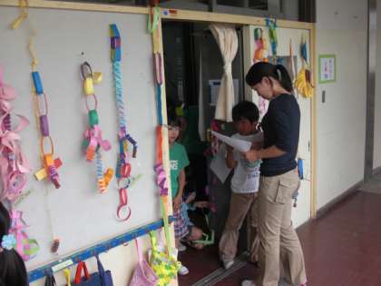 入れ替わり立ち替わり子どもたちが先生のところへやってきます。
